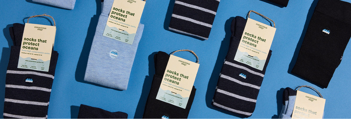 Supportive, comfortable, and designed to pair performance with purpose. Meet your new everyday essential: organic cotton compression socks. These knee-high compression socks help support circulation, reduce fatigue, and keep you comfortable wherever the day takes you.