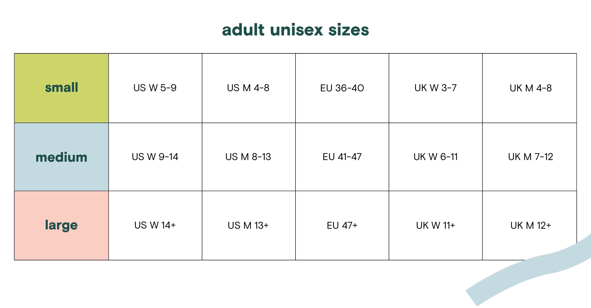 - Fit for US Women’s Shoe Sizes: Small (5-9), Medium (9-14), Large (14+)